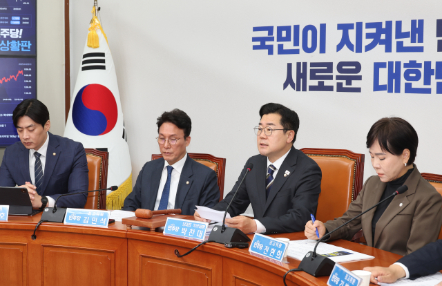 더불어민주당 박찬대 당대표 직무대행 겸 원내대표가 23일 서울 여의도 국회에서 열린 최고위원회의에서 발언하고 있다. 연합뉴스