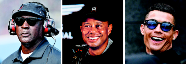 역대 최고 수입 스포츠 선수 1~3위에 이름을 올린 마이클 조던, 타이거 우즈, 크리스티아누 호날두(왼쪽부터). AFP연합뉴스