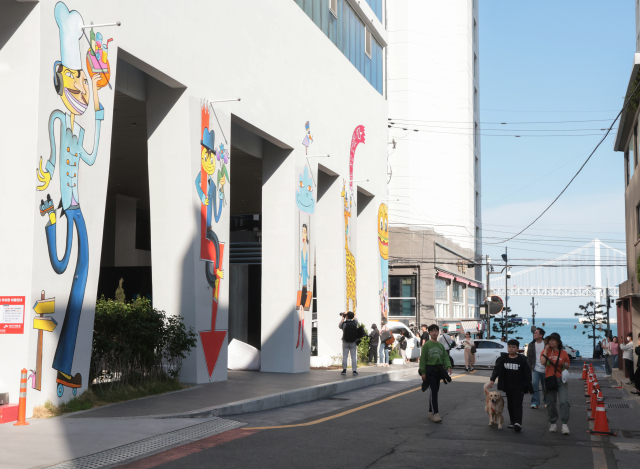 부산 수영구 광안리에서 지난해 8월 문을 연 복합문화공간 포디움다이브 입구. 김은영 기자