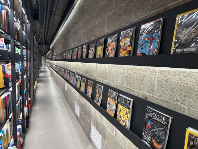 “책 좋아하는 분들은 아시겠지만, 서점 매대 위에 ‘누워 있는’ 책은 대부분 베스트셀러잖아요. 그런데 책이 서가에 꽂히는 순간 생명력이 20~30%로 뚝 떨어져요. 그 책을 찾는 사람은 점점 줄어들 거고요. 그래서 제가 생각한 게, 놓치기 아까운 책, 살리고 싶은 책을 사람들에게 보여주자 싶어서 벽 쪽으로 약 40m나 되는 두 줄 철제 책장을 짰어요.” 그렇게 서점에 들어간 철제 가구 비용만 해도 5억 원이 넘는다고 한다.