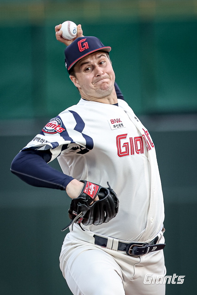 지난 7일 SSG전에서 호투하며 시즌 5승과 함께 사직 첫 승을 거둔 터커 데이비슨. 롯데 자이언츠 제공