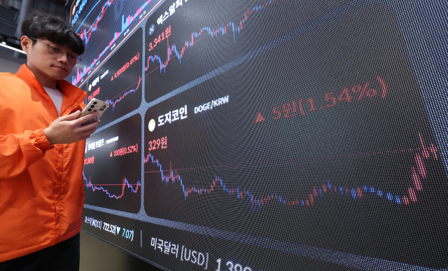 가상자산 시장의 강세에 리플(XRP)이 시가총액 3위로 한 단계 뛰었다. 사진은 서울 서초구 빗썸라운지 강남본점 전광판에 가상자산 가격이 표시된 모습. 연합뉴스