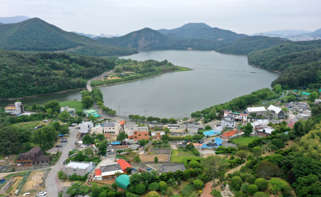 부산 금정구와 기장군, 양산시에 걸쳐 있는 회동상수원 일대 환경정비구역(마을)의 보호구역 해제에 청신호가 켜졌다. 부산 금정구 회동수원지와 상현마을 일대 모습. 정종회 기자 jjh@