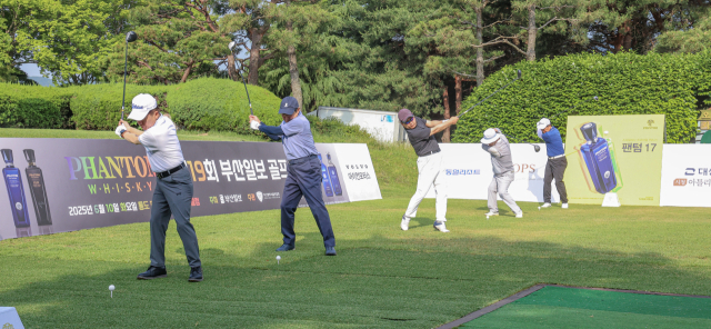 아마추어 골프 최강자를 가리는 ‘팬텀배 제19회 부산일보 골프대회’가 10일 경남 양산시 통도 파인이스트 컨트리클럽에서 320명의 참가자가 출전한 가운데 열렸다. 내빈들이 대회를 축하하기 위해 시타를 하고 있다.