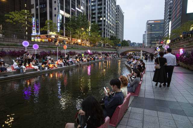 서울야외도서관의 청계천 독서존은 물이 흐르는 공간 특유의 분위기가 독특하다. 서울야외도서관 제공