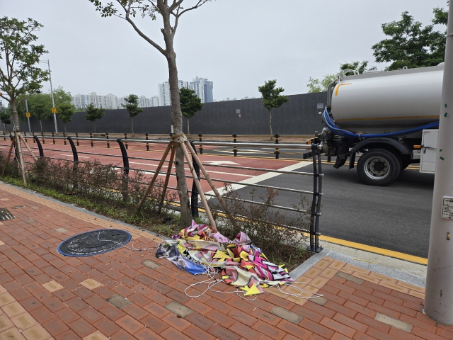 17일 부산 강서구청에 따르면 올해 1~5월 동안 불법 현수막 단속 건수는 9251건이다. 불법 현수막 단속은 매달 1850건꼴로 이뤄지고 있다. 구청은 올해 본예산에 1억 4600만 원을 편성해 국제신도시, 명지오션시티 등 광고 수요가 많은 곳에 상업·행정용 현수막 지정 게시대 20개소를 설치했다. 이날 기준 강서구에는 총 55개소의 지정 게시대가 있지만 불법 현수막을 막기에는 역부족이다.