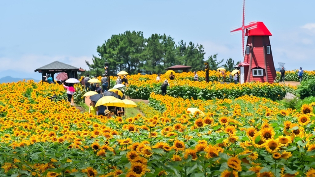 여름의 초입인 6월, 노란 물결이 장관을 이루는 해바라기 축제가 경남 함안에서 열린다.
