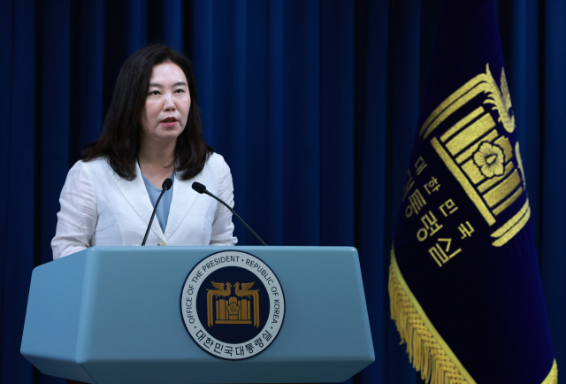 강유정 대통령실 대변인이 19일 대통령실에서 브리핑을 하고 있다. 연합뉴스