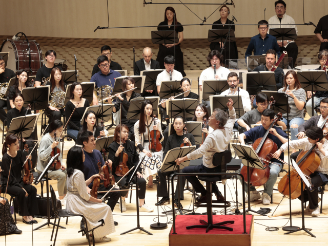 부산콘서트홀 개관일인 20일, 정명훈 예술감독과 APO 오케스트라가 개관 기념 공연에 앞서 리허설을 하고 있다. 정대현 기자 jhyun@