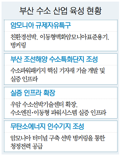 부산이 ‘인바운드 플랫폼’을 자신하는 이유는 탄탄하게 기반을 갖춰가고 있기 때문이다. 시는 지난 9월 ‘암모니아 친환경에너지 규제자유특구’ 실증 사업을 성공적으로 완료했다. 17개 기업이 참여해 선박용 암모니아 연료전지와 벙커링 시스템의 안전성을 세계 최초 수준으로 검증했고, 이는 신규 고용 331명, 투자 유치 1100억 원이라는 성과로 이어졌다. 또한 에코델타시티 국가 스마트시티 시범도시로 선정돼 시민 실생활에 수소 사업 적용이 가능하고, 수소 기반 친환경 에너지 활용이 가능한 항만이 있다는 것도 매력적이다. 항만을 기반으로 한 기자재, 부품 기업들이 집적돼 있으며 대학도 많다.
