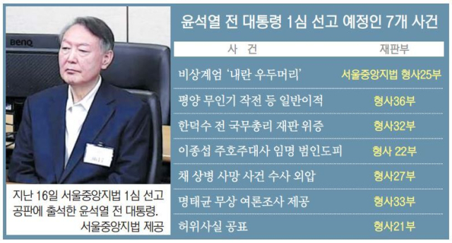 고위공직자범죄수사처(공수처) 체포 방해 혐의로 1심에서 징역 5년을 선고받은 윤석열 전 대통령이 올 상반기 다른 7개 사건 1심 재판을 받을 전망이다. 다음 달 ‘내란 우두머리’ 혐의 사건 선고를 시작으로 다른 사건들에 대한 첫 법적 판단도 이어질 예정이다. 한덕수 전 국무총리와 김건희 여사 1심 선고는 이달 중 나오고, 이상민 전 행정안전부 장관 1심 선고일은 다음 달로 지정됐다.