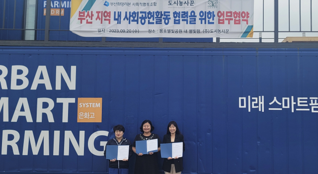 ㈜도시농사꾼(대표이사 전정욱)은 20일 부산희망리본사회적협동조합 및 스토리앤쿡과 지역사회공헌 사업을 강화하기 위한 업무협약(MOU)을 체결 했다고 밝혔다.