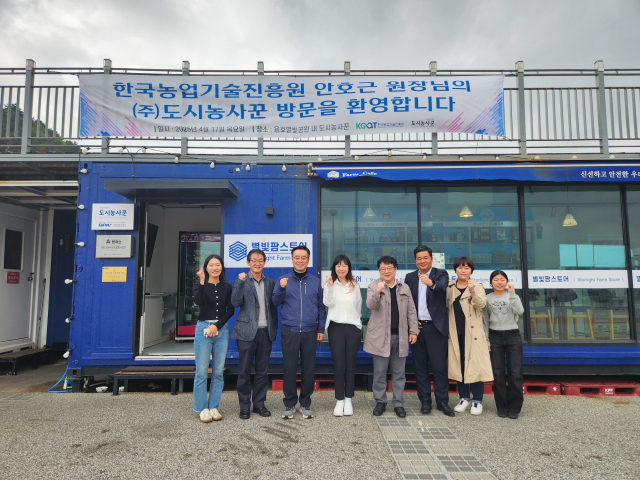 방문에는 농업기술진흥원 안호근 원장, 전영걸 벤처창업본부장과 도시농사꾼 전정욱 대표 등 관계자들이 참석했다.
