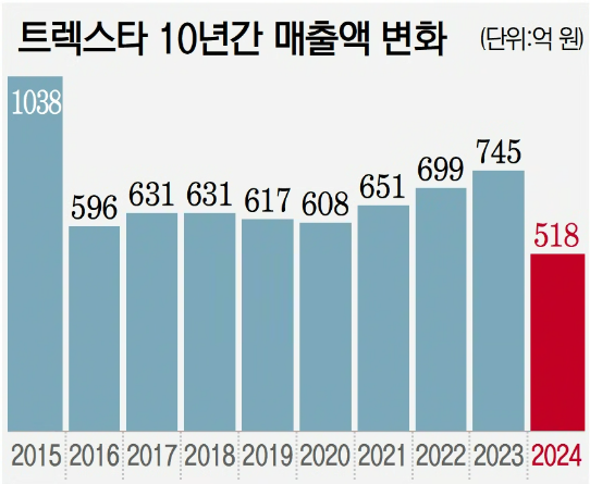 2023년 745억 원을 기록한 트렉스타 매출은 지난해 518억 원으로 200억 원 이상 줄었다. 97억 원의 당기순손실도 났다.