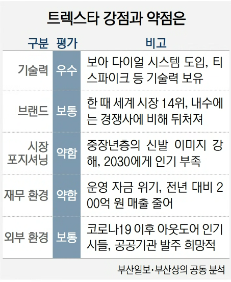 부산일보와 부산상공회의소 기업동향분석센터가 공동으로 트렉스타의 기업 가치와 미래 가능성 등을 점검하는 기업 분석 작업을 진행한 결과, 트렉스타는 여전히 뛰어난 기술력 등 장점이 많은 기업이었다. 기술력은 글로벌 시장에도 여전히 통했다. 기술력 덕분에 브랜드 인지도는 높았다.
