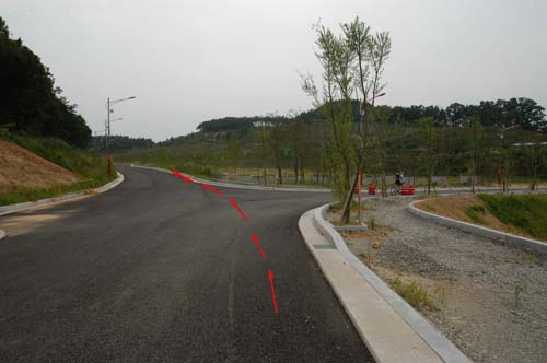 ¡ã ÀÚÀü°Å µµ·Î´Â ÇÑÀûÇÑ ½Ã°ñ·Î Àá½Ã Á¢¾îµç´Ù. ¿¹¼º±³¸¦ ¸¸³ª¸é °Ç³ÊÁö ¸»°í ¿À¸¥ÂÊÀ¸·Î ²ª¾î ÀüÁøÇÑ´Ù.