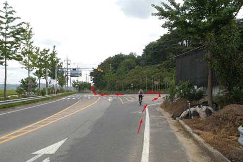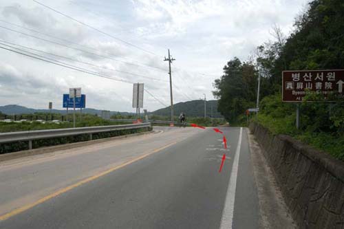 ¡ã º´»ê¼¿ø ¾Õ 2.8km ÁöÁ¡. ¿ÞÂÊÀ¸·Î ²ª¾îµé¾î°¡¸é Á߸®Á¦¸¦ Ÿ°í ³«µ¿° Á¾ÁÖ ÀÚÀü°Å±æÀ» µû¶ó °£´Ù. Á÷ÁøÇÏ¸é ºñÆ÷Àåµµ·Î¸¦ µû¶ó º´»ê¼¿øÀ¸·Î ÇâÇÑ´Ù.