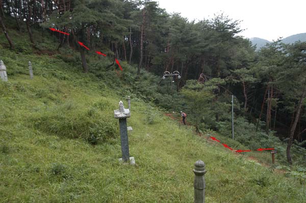 ¡ã 740.4ºÀÀ» Áö³ª¸é ÃÖÁ¤»ê ´É¼±À» º¼ ¼ö ÀÖ´Â Àü¸Á¹ÙÀ§°¡ ³ª¿Â´Ù. ¿À¸¥ÂÊÀ¸·Î °¡¸é Àü¸Á¹ÙÀ§ °¡´Â±æ, ¿ÞÂÊ ±æÀº ÅëÁ¡·É °¡´Â ±æÀÌ´Ù.
